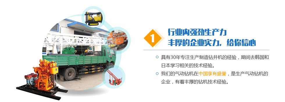 客戶共創(chuàng)雙贏。堅持科技先導、質(zhì)量第一、信譽第一。讓我們用真誠的智慧共同締造事業(yè)的成功。讓我們用真誠的智慧共同締造事業(yè)的成功。希望與您的合作,能為我們的雙方共添輝煌。經(jīng)營宗旨:質(zhì)量求生存,信譽樹品牌,價格贏打井設備市場,創(chuàng)新圖發(fā)展。我們將以一流的技術換取您的信賴和欣慰。公司以人為本,廣納天下人才,技術力量雄厚。公司堅持以人為本,以優(yōu)取勝,精誠服務,持續(xù)改進的質(zhì)量方針和氣動鉆機服務宗旨。真誠地與氣動鉆機